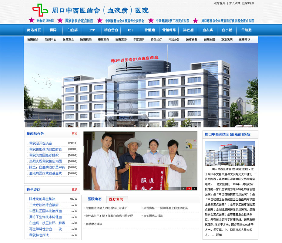 案例名稱:周口中西醫(yī)結(jié)合醫(yī)院網(wǎng)站